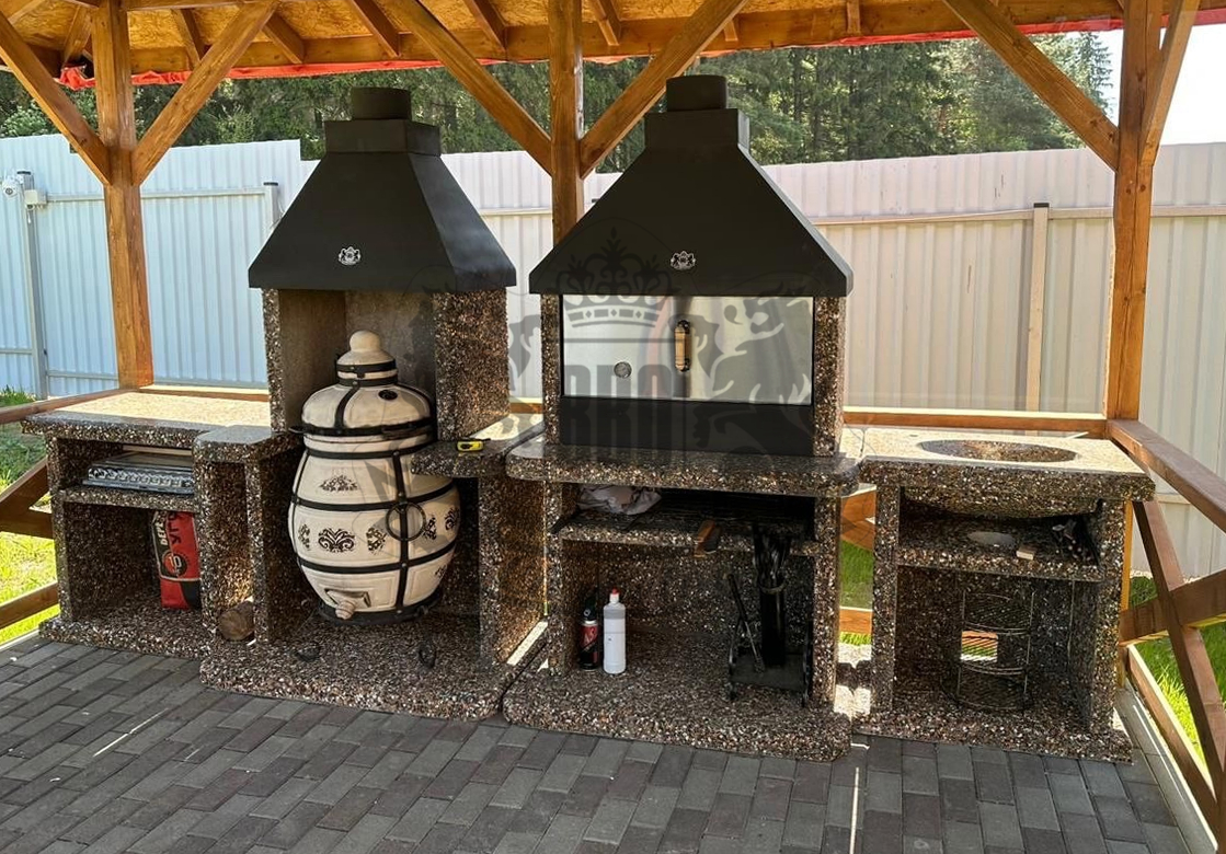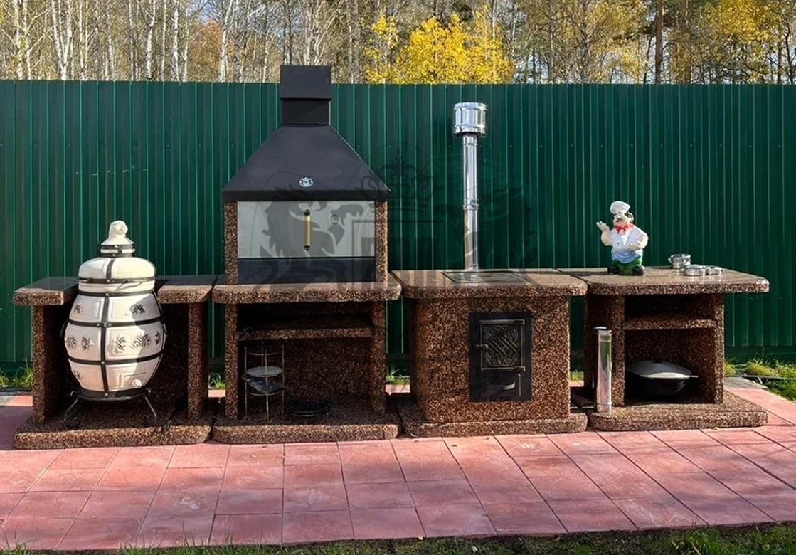На сайте подробная информация о характеристиках модулей и фото наших работ. Есть варианты доукомплектации: может быть установлена коптильня, печь с плитой или даже модуль под тандыр. Выберите подходящую конфигурацию с казаном или функционалом камина, и мы создадим для вас идеальное место для кулинарных шедевров.