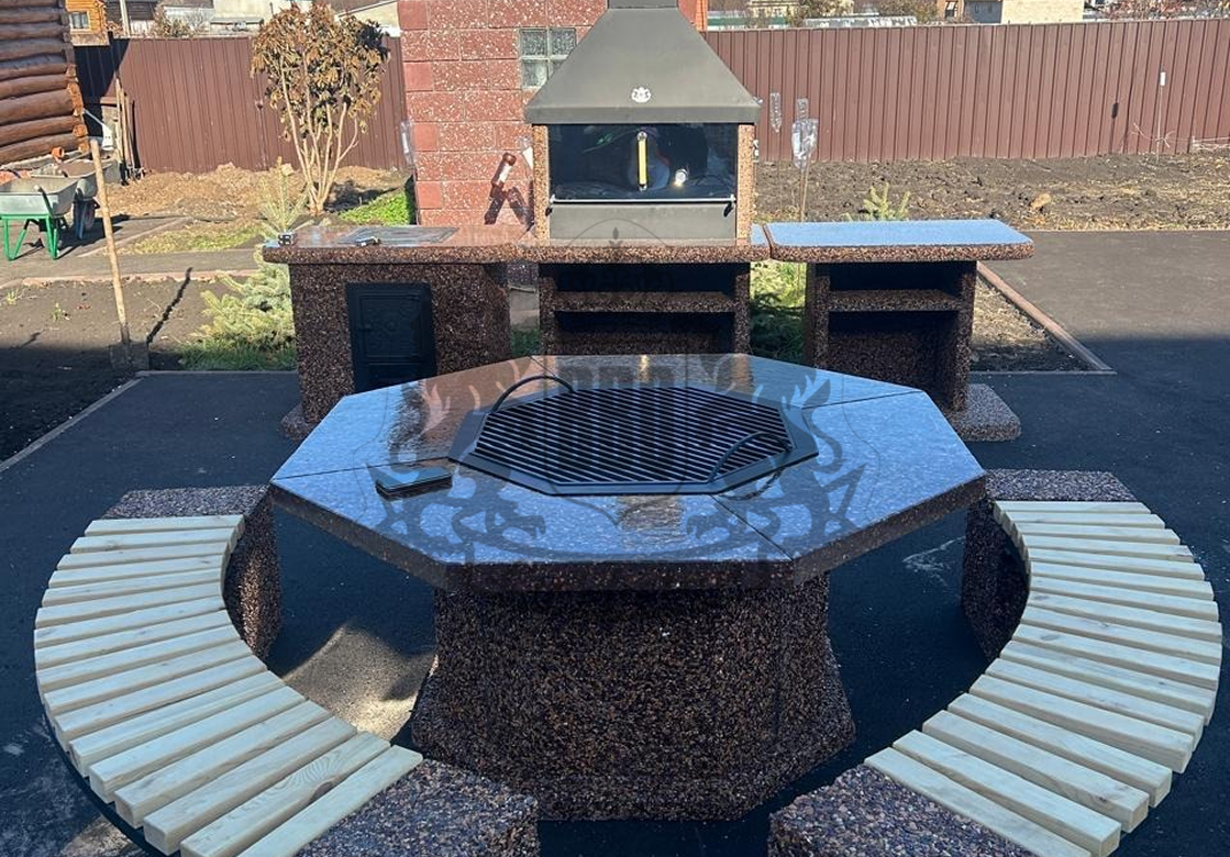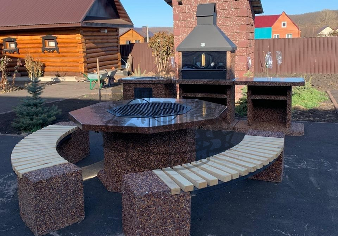 Гриль-столы от производителя «ЛюксБетон.рф» — это инновационное решение, объединяющее обеденную зону и профессиональное оборудование для жарки мяса. В отличие от стандартной мебели, наши уличные столы выполнены из армированных плит с натуральной каменной крошкой и бетона марки М600. Такая конструкция выдерживает любые погодные условия и прослужит 75 лет и более, становясь центром притяжения для настоящих ценителей комфорта.
